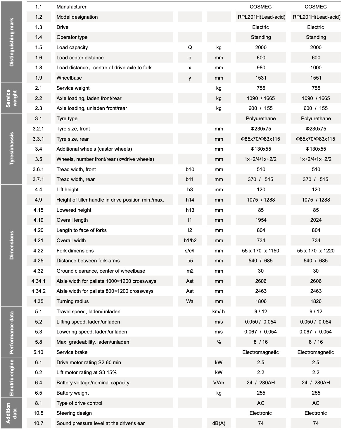RPL Series adalah truk heavy-duty dengan platform lipat dan lengan pengaman kuat dari baja yang tahan lama. Ditenagai motor traksi vertikal AC, truk ini dilengkapi baterai Li-Ion 24V/210Ah dengan fitur pengisian cepat tanpa mengganggu jadwal kerja. Teknologi presisi tinggi dan komponen yang diperkuat memastikan ketahanan, akurasi, dan kinerja optimal dalam aplikasi tugas berat.