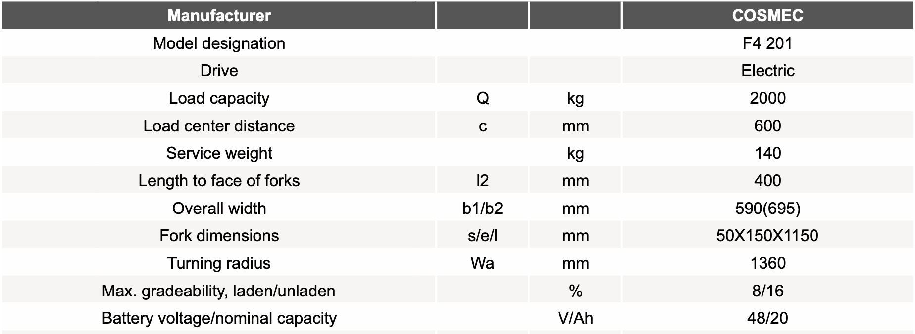 F4 201 adalah forklift listrik bertenaga 48V dengan kapasitas angkut hingga 2 ton, menawarkan produktivitas tinggi melalui desain tiller head baru, opsi roda penstabil, dan baterai Li-Ion plug in & out yang mudah diganti. Dengan desain platform fleksibel dan kemampuan memuat hingga 164 unit per kontainer 40', F4 201 memberikan penghematan biaya distribusi yang signifikan.