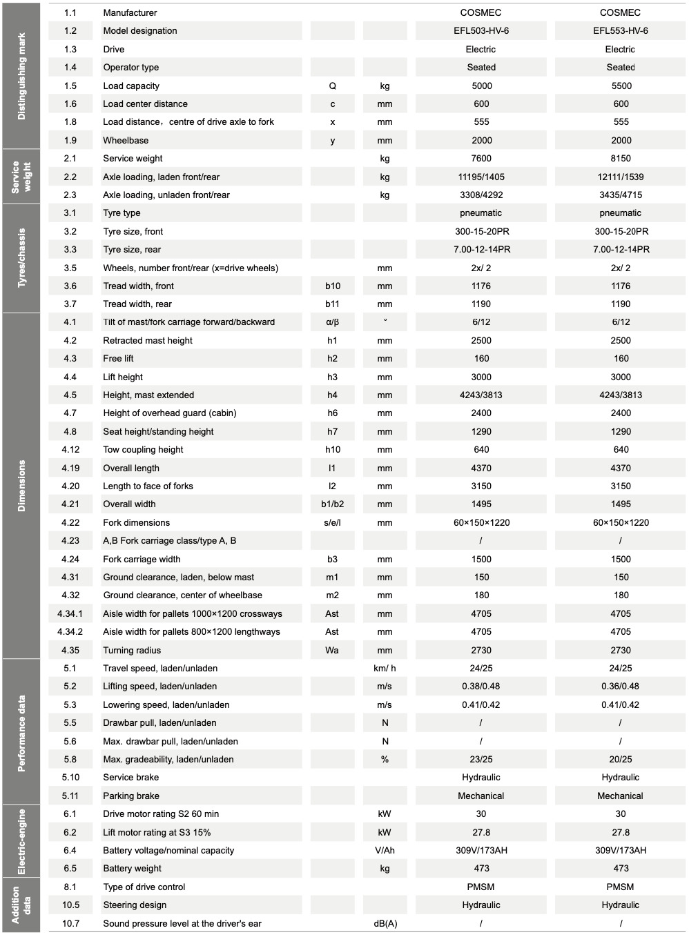 Forklift listrik berkapasitas tinggi yang dirancang untuk mengangkat beban berat dengan presisi dan keamanan. Menggunakan teknologi baterai LFP 309.12V173Ah dan dilengkapi dengan berbagai fitur keselamatan, forklift ini memberikan performa optimal dalam berbagai aplikasi industri