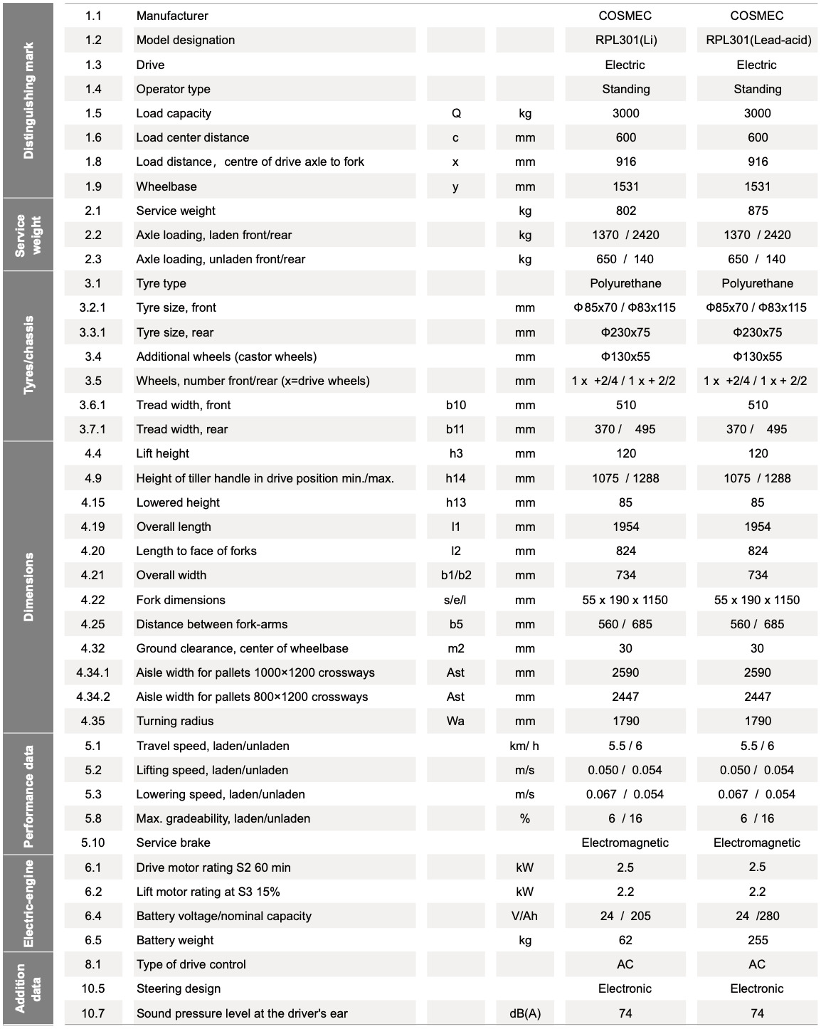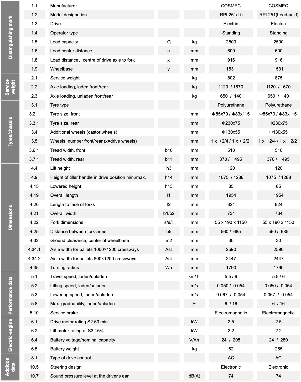 RPL Series adalah truk heavy-duty dengan platform lipat dan lengan pengaman kuat dari baja yang tahan lama. Ditenagai motor traksi vertikal AC, truk ini dilengkapi baterai Li-Ion 24V/210Ah dengan fitur pengisian cepat tanpa mengganggu jadwal kerja. Teknologi presisi tinggi dan komponen yang diperkuat memastikan ketahanan, akurasi, dan kinerja optimal dalam aplikasi tugas berat.